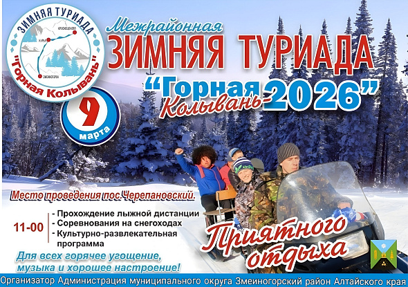 Приглашаем на XV межрайонную зимнюю туриаду «Горная Колывань-2026», которая состоится 9 марта в пос. Черепановский муниципального округа Змеиногорский район Алтайского края.