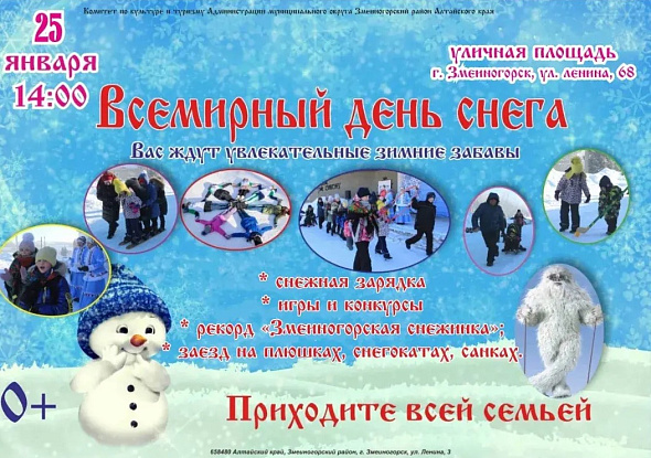 В выходные на площади около администрации города пройдет, очень актуальный для Змеиногорска в этом году, праздник - Всемирный день снега!