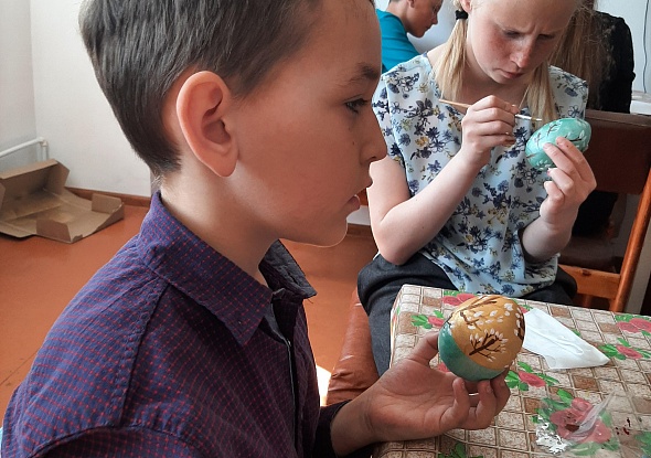 Сегодня в воскресной школе Змеиногорска при Храме Преображения Господня прошел мастер-класс для ребят по подготовке пасхальных сувениров.