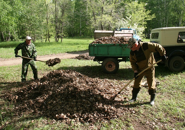 На работы по очистке аллей и площадок парка имени 60-летия ВЛКСМ вышли сотрудники администрации города,