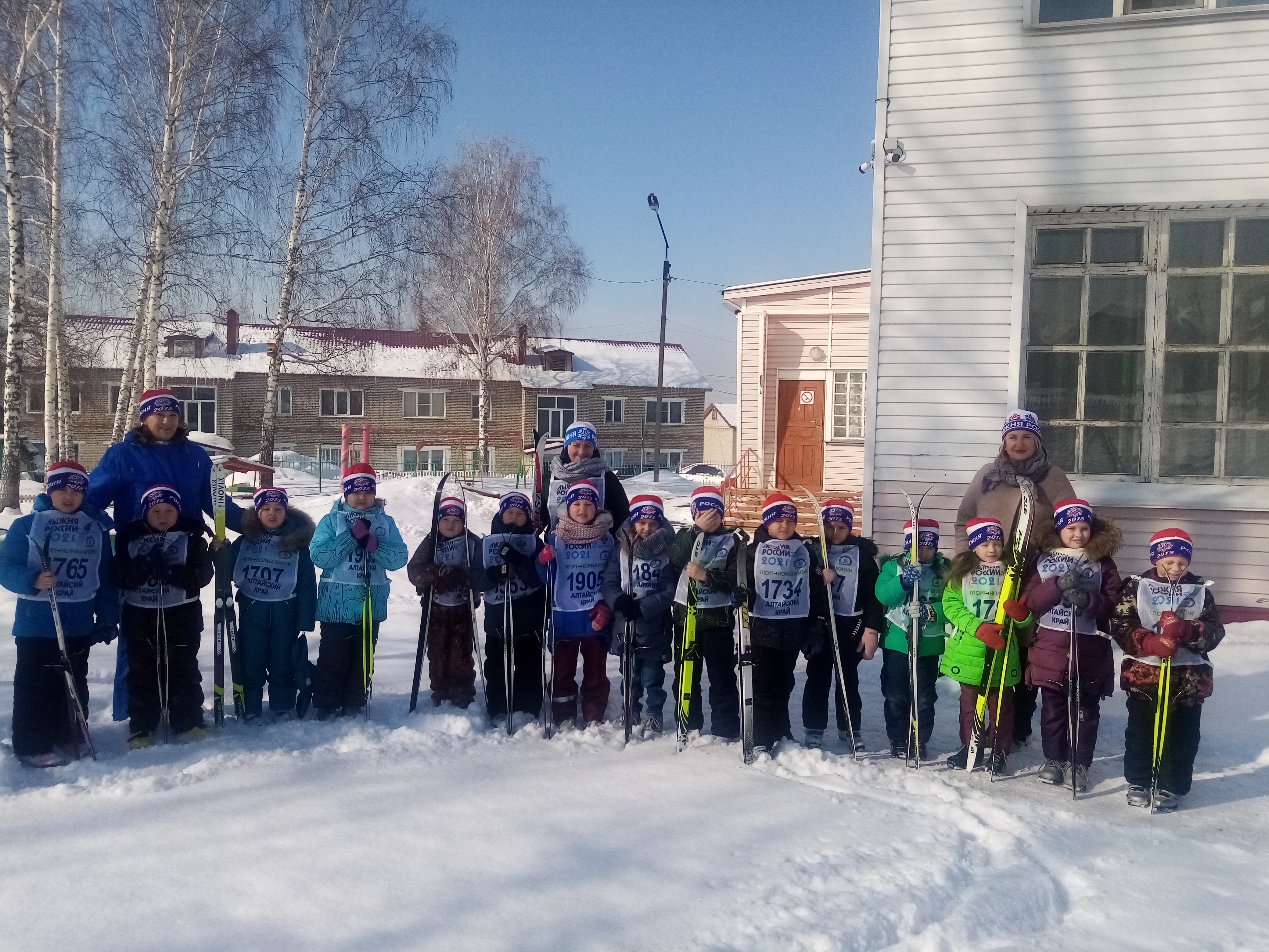 Воспитанники подготовительной к школе группы «Лимпопо», под руководством тренера детской спортивной школы Людмилы Ивановны Русаковой и воспитателя Ольги Борисовны Ершовой вышли на лыжню, проложенную на территории детского сада.