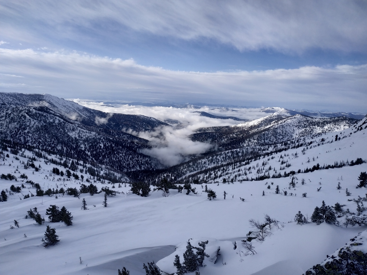 «Восьмого апреля 2021 года мы добрались до избушки в верховьях Тигирецкого хребта. Вход в практически полностью заметённую снегом избушку пришлось прокапывать около 2,5 часов. На следующий день, отправились на снегомерную съёмку в сторону горы Разработная.
