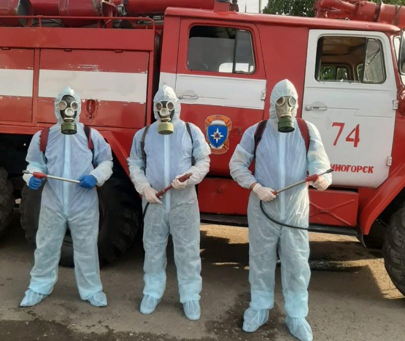 Сотрудники 16 пожарно-спасательного отряда ФПС продолжают вести санитарную обработку объектов в городе Змеиногорске