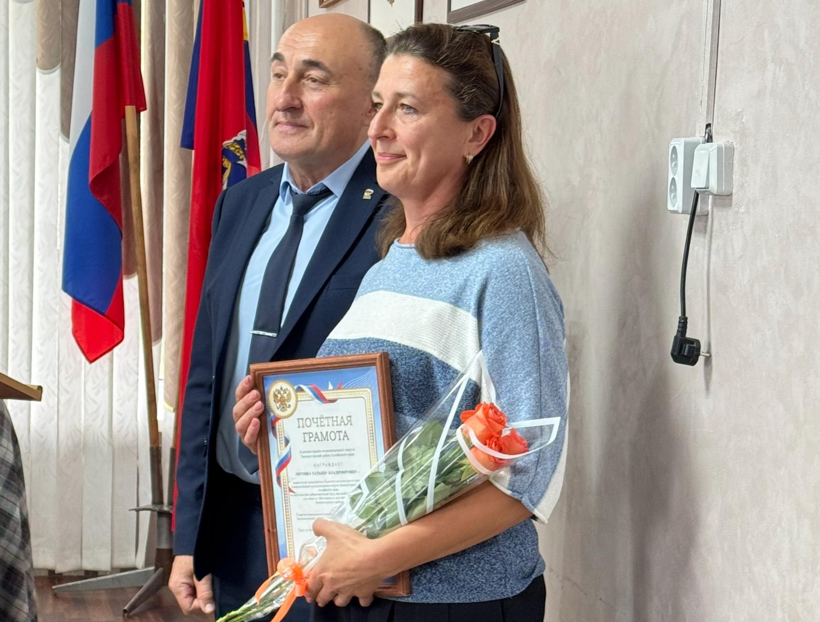 Также почетной грамотой награждена Литовка Татьяна, заместитель председателя комитета по культуре и туризму, за большой вклад в развитие культуры, высокий профессионализм, добросовестный труд и в связи со 100-летием Змеиногорского района.