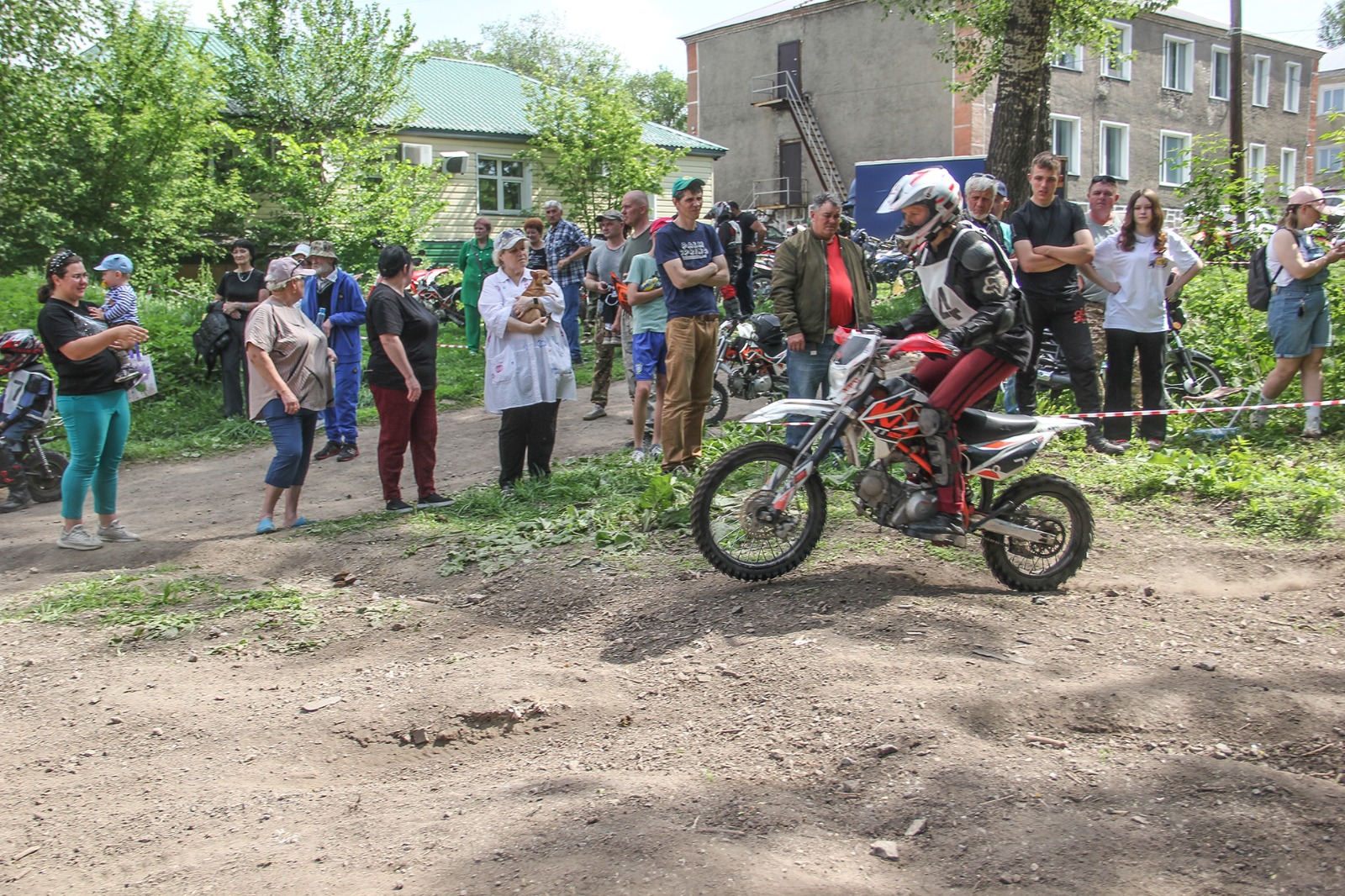 Трасса для соревнований, проходила по самым труднопроходимым участкам городского парка, на пути мотогонщиков была грязь, лужи, камни, овраги, крутые склоны.