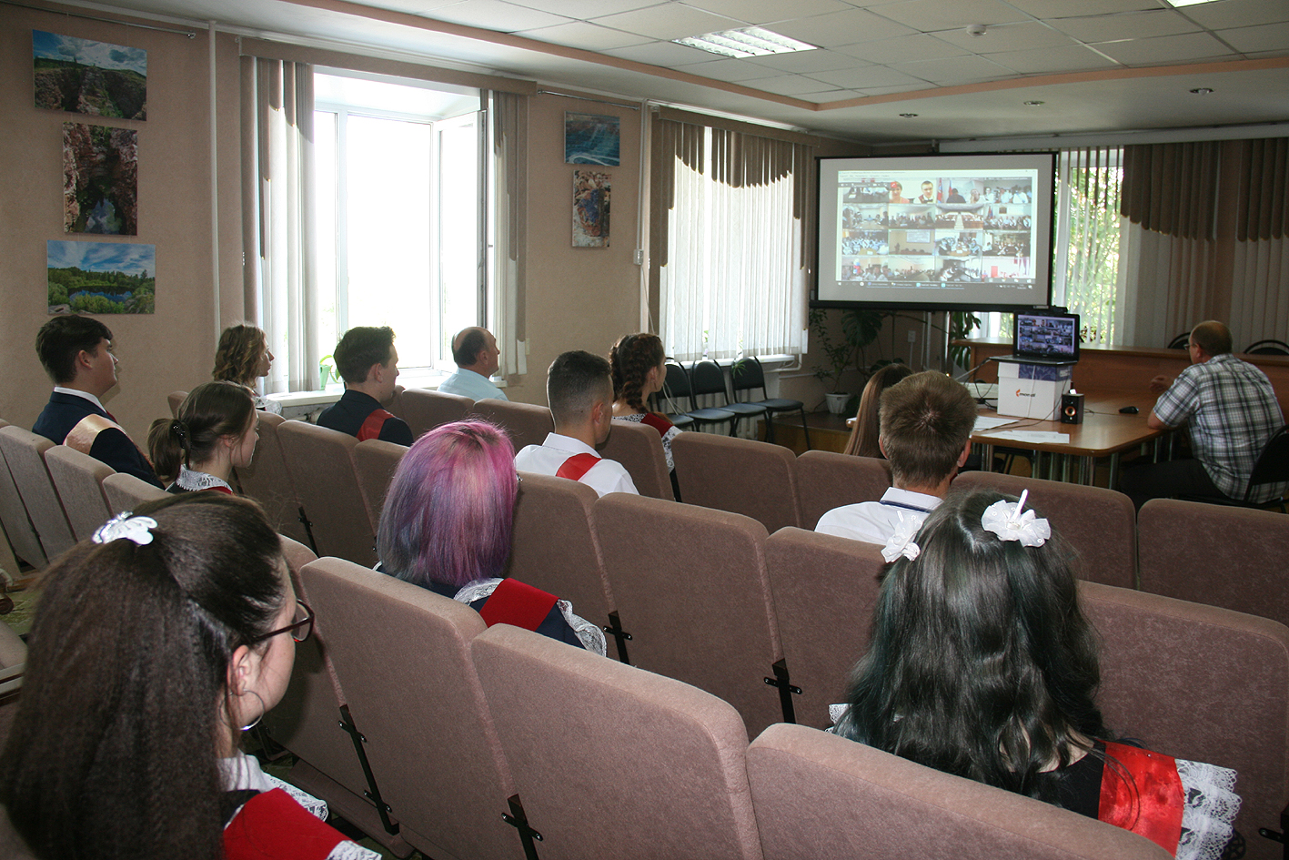 Сегодня губернатор Алтайского края Виктор Томенко провел онлаин встречу с лучшими выпускниками школ региона. Если ранее такие встречи проходили в формате живого общения, то в этом году в связи со сложной эпидемиологической обстановкой такая встреча прошла в режиме онлаин. В актовом зале районной администрации собрались все медалисты нашего города и района, всего 14 человек. Они пообщались с губернатором, он их поздравил с успешным окончание школы и пожелал всем удачи в поступлении в ВУЗы. После общения с Виктором Томенко наши выпускники получили уже традиционные денежные поощрения от главы администрации района Евгения Фролова.