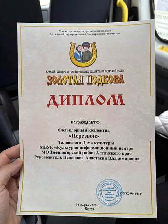 Таловский фольклорный ансамбль, исполнил две песни села Тулата, следует отметить, что исполнение было а капельным. Ребята очень старались, но конкурсный отбор был жёстким и за своё выступление коллектив получил диплом участника фестиваля и продолжительные аплодисменты зрителей.