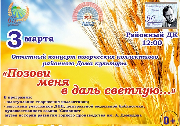Совсем скоро 3 марта нас всех приглашает районный ДК в городе Змеиногорске на большой отчетный концерт творческих коллективов.