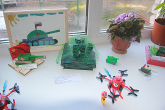 Кроме танков, оружия времен Великой Отечественной войны на выставке имеются квадрокоптеры (современный вид вооружения). Их собрали из деталей конструктора «ЛЕГО». А еще, здесь есть модель, изготовленная по современной 3D технологии!