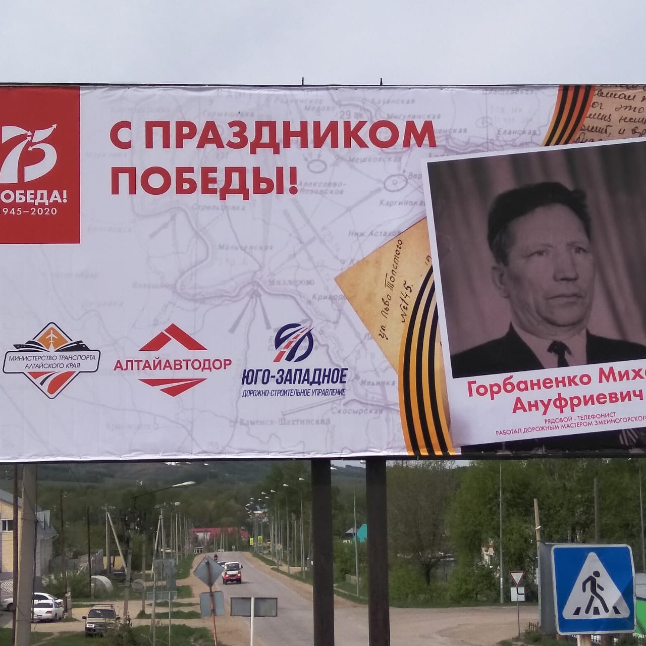Вот такой баннер появился в Змеиногорске. Он находится в районе автостанции. Изготовили его по заказу Министерства транспорта Алтайского края, Алтайавтодора, и Юго-Западного ДСУ.С наступающим праздником, друзья!