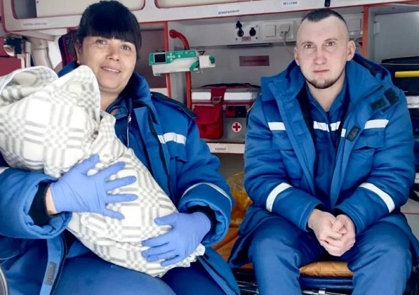 Женщина была на 36-й неделе. Вечером у нее начались схватки, но малыш не стал ждать доставки в больницу и появился на свет в машине скорой
