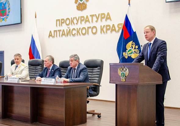 В прокуратуре Алтайского края прошло торжественное мероприятие, посвященное празднованию 303-й годовщины прокуратуры России. В нем приняли участие Губернатор Алтайского края Виктор Томенко, председатель Алтайского краевого Законодательного Собрания Александр Романенко, Главный федеральный инспектор по Алтайскому краю Юрий Земский, сенаторы Российской Федерации Наталья Кувшинова и Виктор Зобнев, руководители прокуратуры и правоохранительных органов региона и судов, сотрудники аппарата и горрайспецпрокуратур, ветераны ведомства.