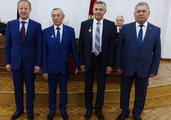 В торжественной церемонии награждения Анатолия Степановича Кондыкова участвовали Губернатор Алтайского края Виктор Петрович Томенко и председатель Алтайского краевого Законодательного Собрания Александр Алексеевич Романенко.