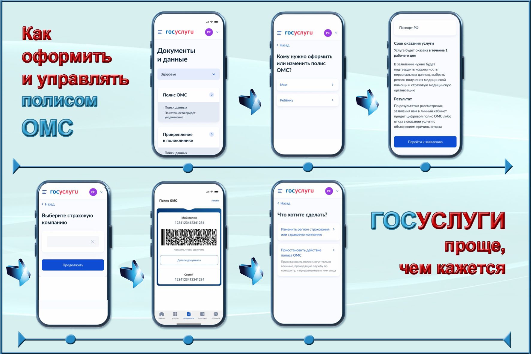 Пошаговую инструкцию со скриншотами, поясняющую порядок самостоятельного оформления полиса обязательного медицинского страхования посредством ЕПГУ можно посмотреть на официальном сайте ТФОМС Алтайского края»: https://tfoms22.ru/press-centr/news/2689/.