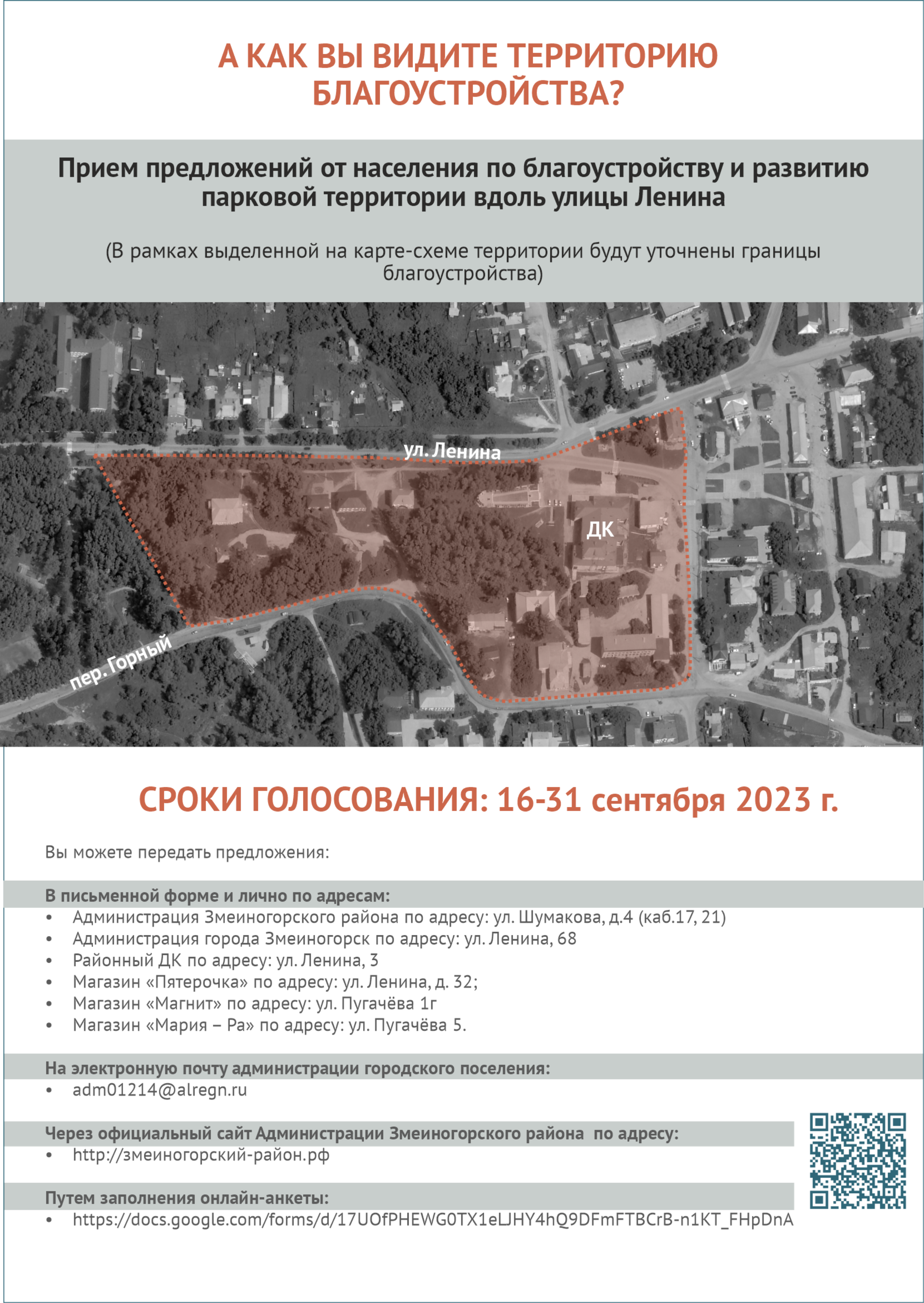 Парковая зона вдоль улицы Ленина — территория, которую мы будем благоустраивать в рамках Всероссийского конкурса создания комфортной городской среды в малых городах и исторических поселениях. Благодарим вас за активное участие в голосовании!Чтобы помочь архитекторам узнать особенности города и лучше понять территорию проектирования, просим вас заполнить анкету по ссылке: https://docs.google.com/forms/d/17UOfPHEWG0TX1eLJHY4hQ9DFmFTBCrB-n1KT_FHpDnA/edit