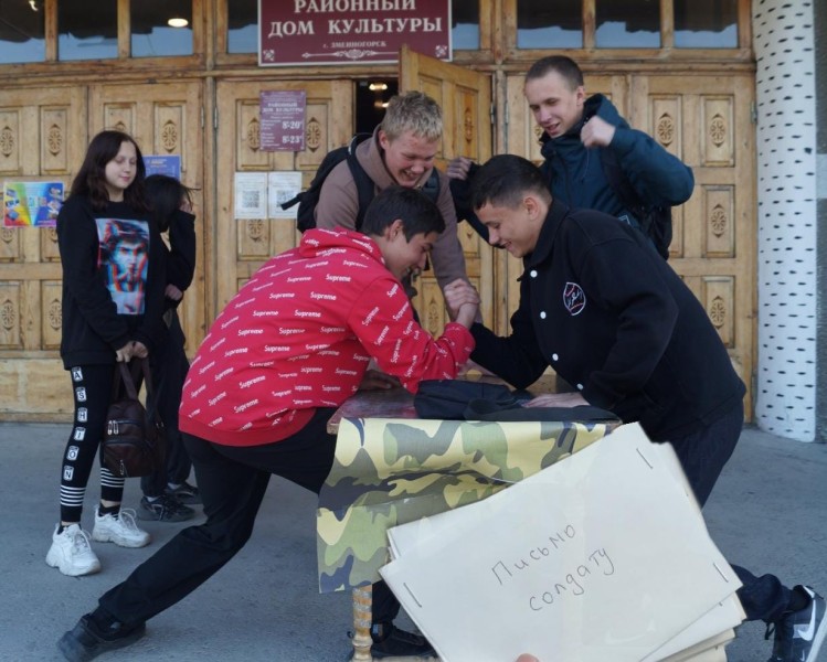 Парни опробовали свои силы в армрестлинге, в завершении мероприятия ребята приняли участие в акции "Письмо солдату".