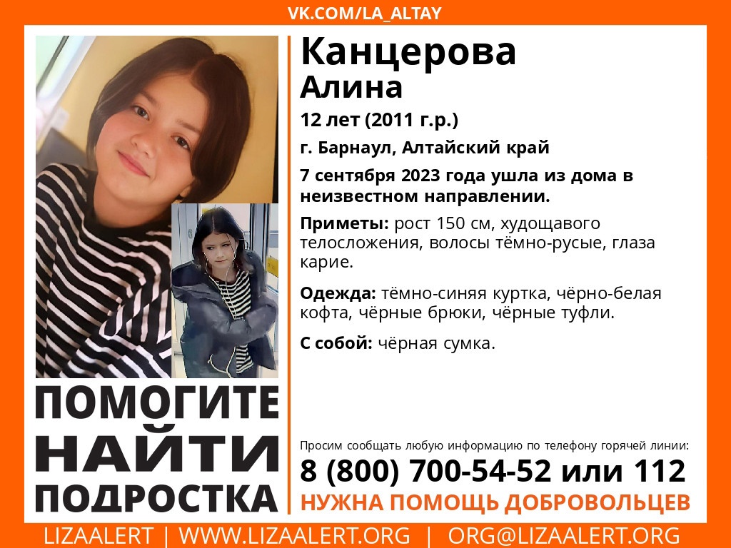 В Барнауле пропала 12-летняя девочка, сообщает алтайский поисковый отряд "Лиза Алерт".