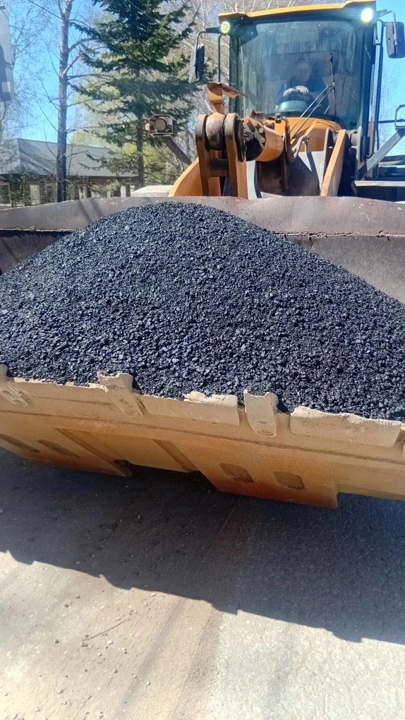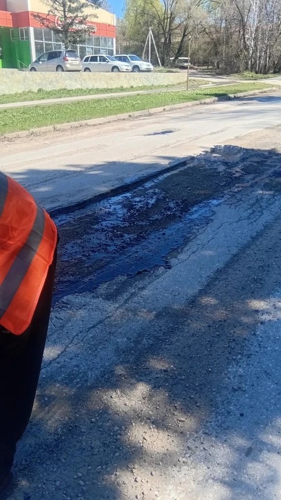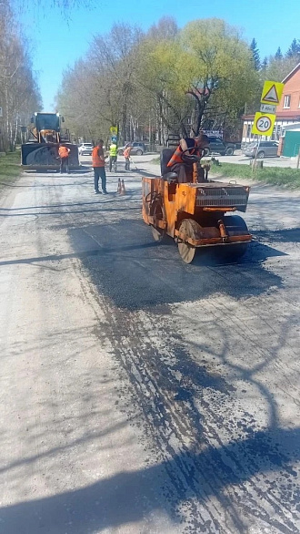 Продолжаются работы по ремонту дорожного полотна на улице Ленина в городе Змеиногорске.На фото: идёт укладка асфальтового покрытия.