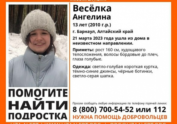 Девочка ушла из дома 21 марта и до сих пор не вернулась