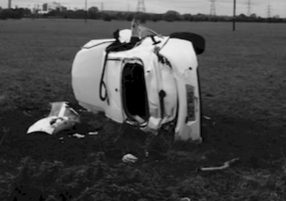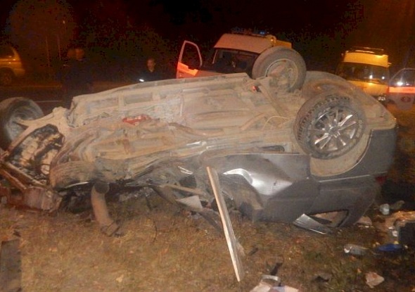 В результате аварии одна машина оказалась в кювете, а вторая перевернулась на крышу