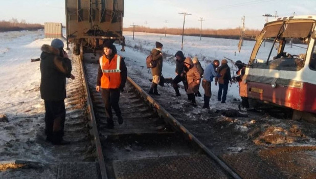 Инцидент произошел в пятницу, 24 декабря, в 16:45 на железнодорожном переезде на участке Кулунда — Табуны.«Водитель пассажирского автобуса нарушил правила дорожного движения, выехав на пути на запрещающий сигнал переездной сигнализации перед приближающимся грузовым поездом. Переезд оборудован исправной светозвуковой сигнализацией», — говорится в сообщении.