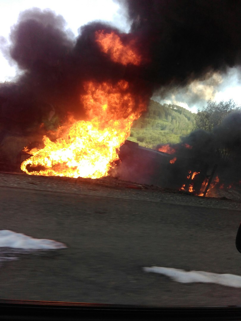 Бензовоз перевернулся и взорвался в Алтайском крае, водитель погиб