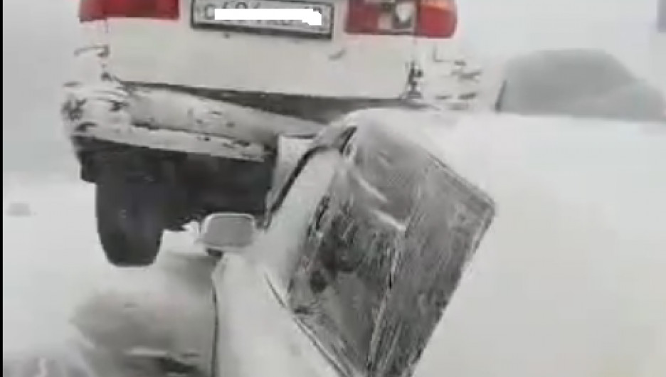 Еще одна массовая авария произошла на Алтае: машину закинуло на капот другого авто