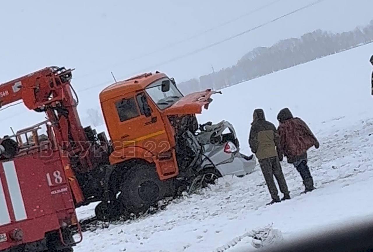 В социальных сетях появились фотографии с места смертельной аварии на трассе в Алтайском крае. Пост опубликовали в сообществе «В курсе 22».