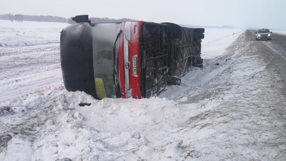 Перевернулся рейсовый автобус с 54 пассажирами на алтайской трассе
