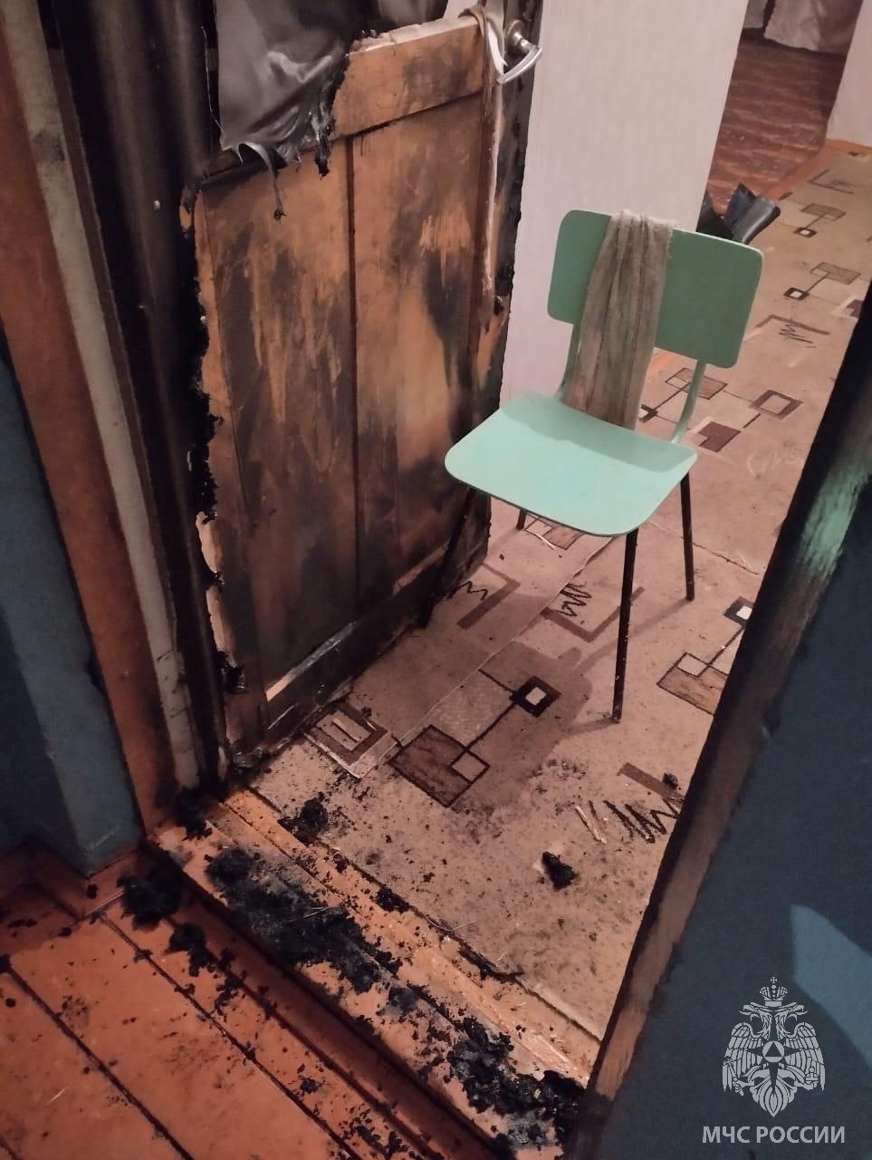 В городе Змеиногорске по ул. Ленина ночью произошёл пожар в жилой трёхэтажке. На лестничной площадке 2 этажа горела входная дверь. Возгорание оперативно ликвидировано на площади около одного квадратного метра (горела входная дверь в квартиру).Погибших, пострадавших нет, самостоятельно эвакуировались 36 человек, звеном газодымозащитной службы спасены двое.