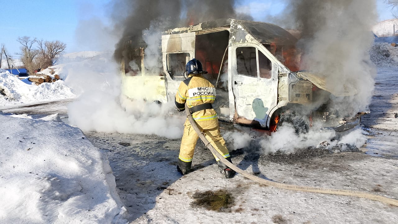 В Змеиногорске сегодня сгорел пассажирский автобус