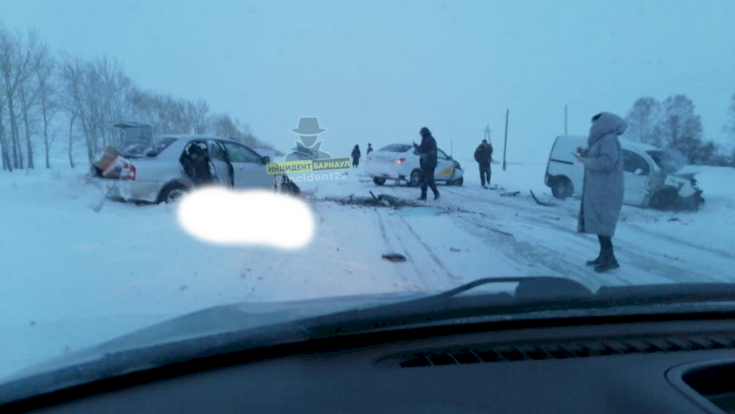 Жесткое ДТП с участием трех автомобилей произошло на заснеженной алтайской трассе