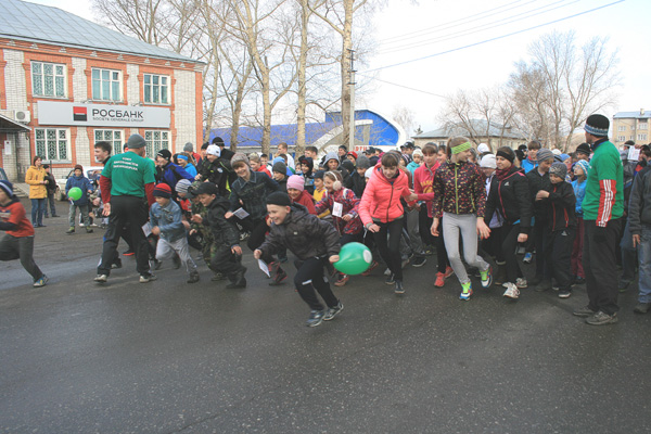 Через несколько минут дети и взрослые стартуют. Маршрут забега: магазин "Ассорти" -автостанция - школа с УИОП - редакция газеты "ЗВ" - магазин "Ассорти".