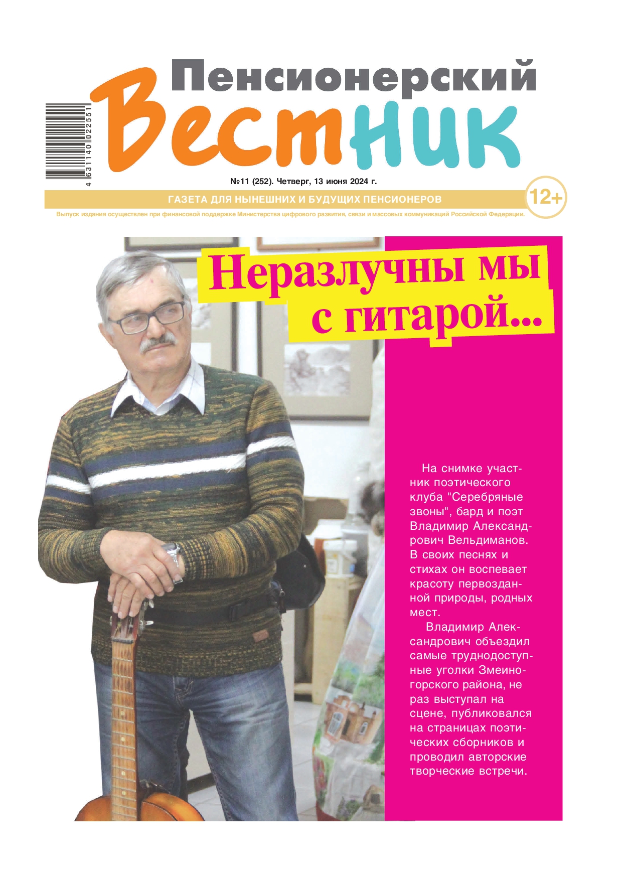 Жизнь прекрасна всегда, даже когда тебе за... В этом уверен Владимир Александрович Вельдиманов, наш герой, гитарист, дед и отец!Как всегда в этом номере вы найдете много полезных советов, интересной информации:, например, узнаете, как в Солтонском районе работает Центр встреч людей старшего возраста. А еще познакомитесь с Валерием Кирносом: художником и многодетным отцом!