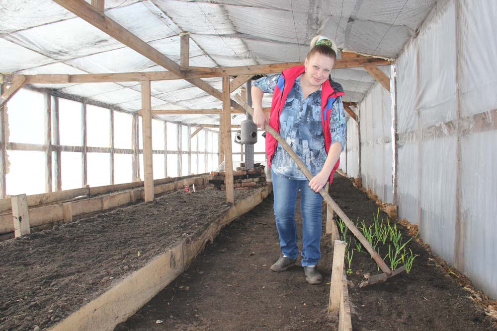 Несмотря на то, что у молодой мамы и по дому хлопот хватает, с начала марта в теплице кипит работа: уже совсем скоро созреет редис, а с ранних сортов помидоров примерно через месяц можно будет собирать первый урожай… Кстати, в этом году Наталья выращивает на продажу не только овощи, но и рассаду.