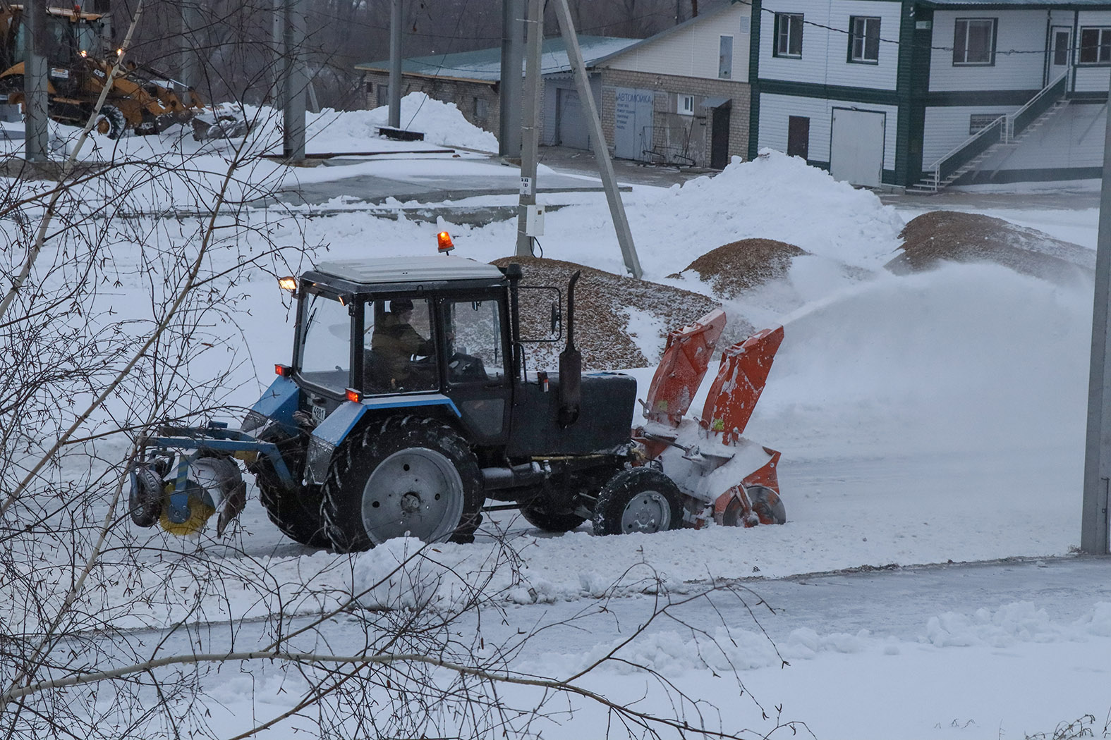Сообщает ИП СавиновС пяти часов утра на линию вышел грейдер. К началу рабочего дня пройдены улицы по маршруту автобуса. Ротор расчистил тротуары, сейчас работает в микрорайоне улицы Нахимова. Погрузчик выходит на улицу 40 лет Октября. Там высокий снежный накат, улица заужена, требуется тяжелая техника.