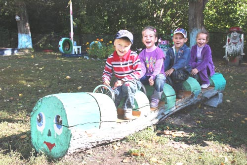 Во дворе детского сада "Огонек" появились поделки, сделанные родителями