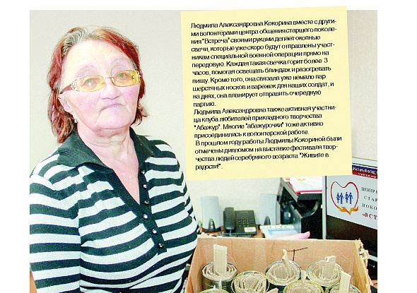 "Огоньки тепла" дарят солдатам Людмила Александровна Кокорина и ее подруги в клубе "Встреча", изготавливая окопные свечи!