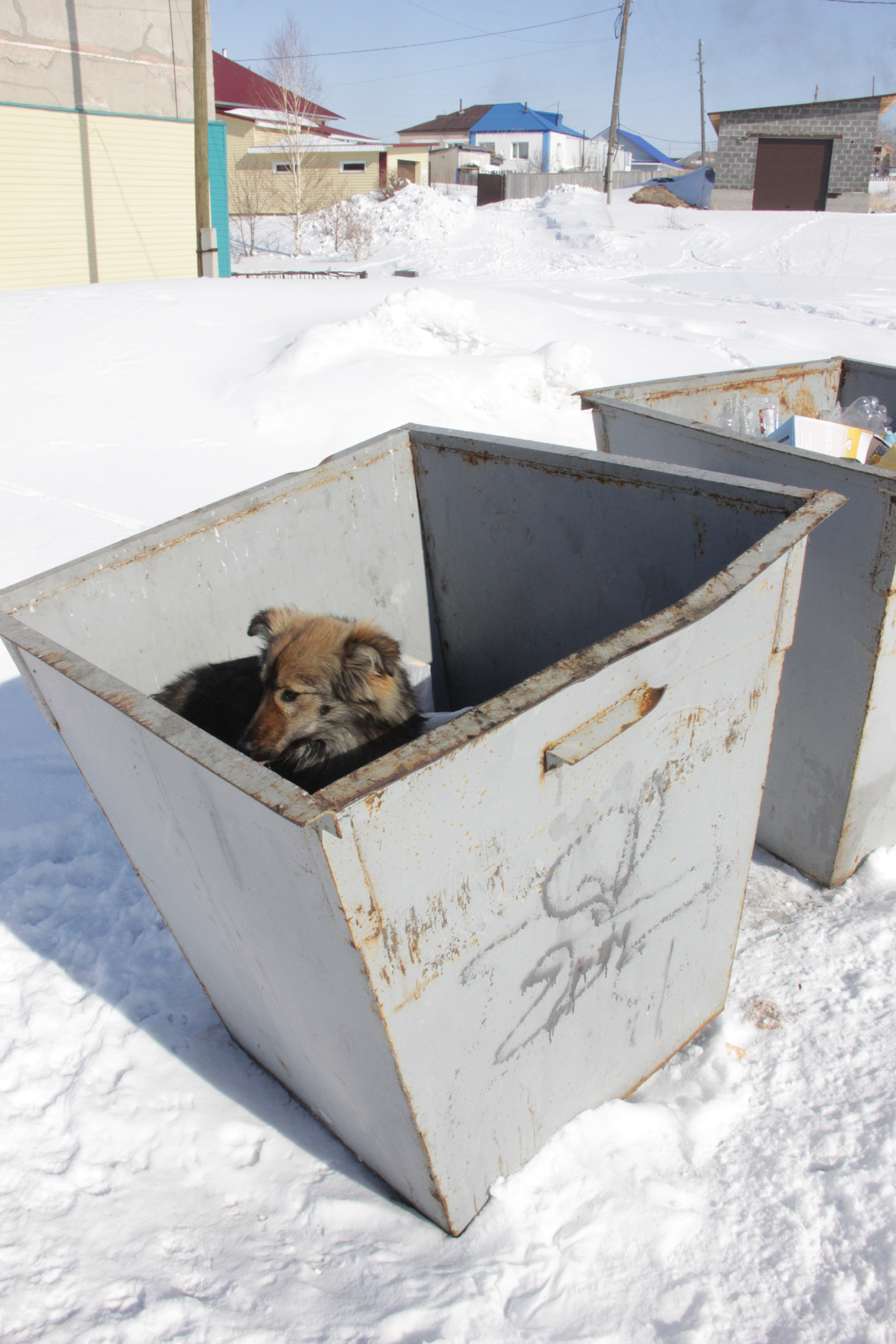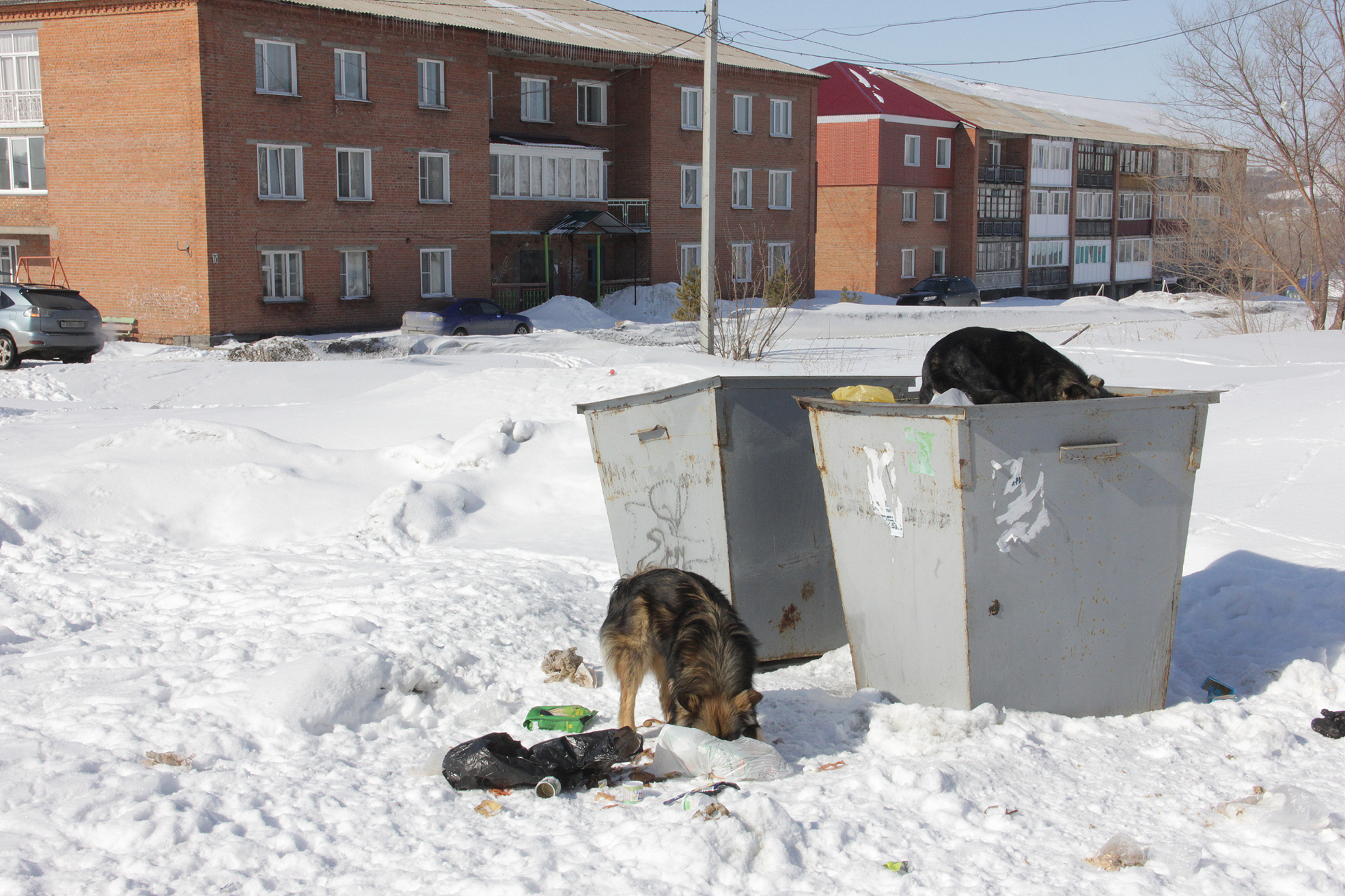 Фотографии сделаны, сегодня, 3 марта, на улице Ленина.Как видите, бродячие собаки чувствуют себя весьма привольно. Они, в качестве места проживания и кормления облюбовали мусорные контейнеры. раскидывают мусор, спят там и облаивают всех прохожих, защищая "свою" территорию.
