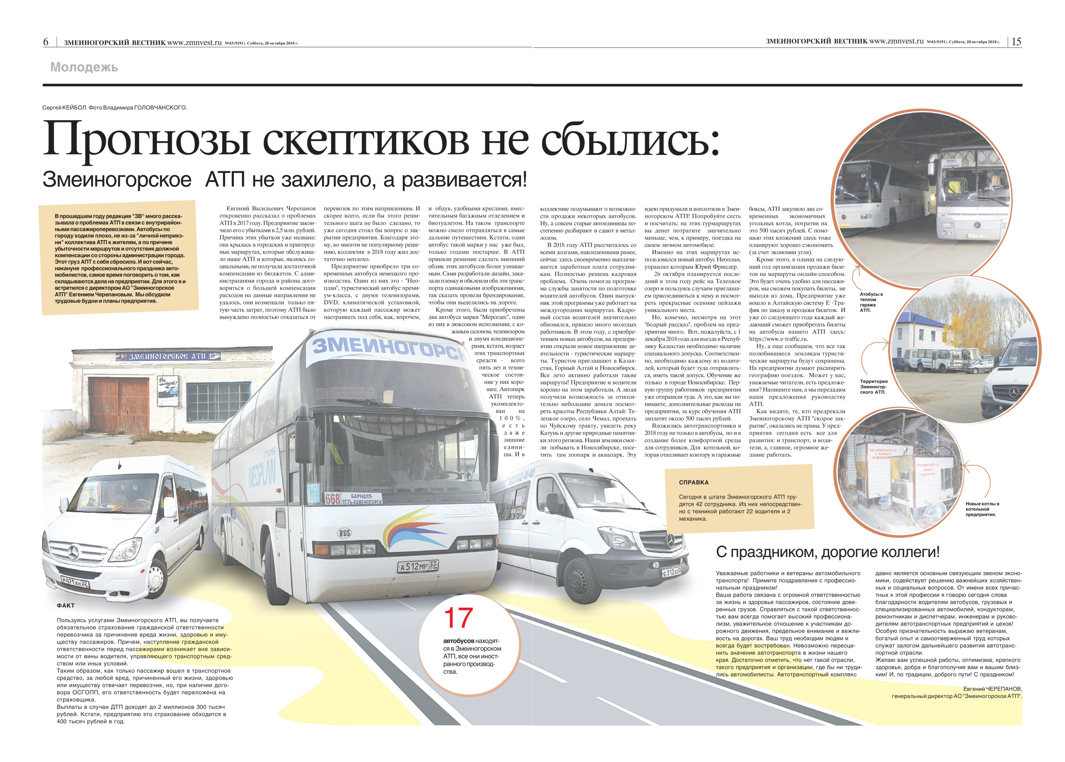 Специальную тему номера ко Дню работников автотранспорта подготовили в редакции "ЗВ".Читайте материал о том, как живет сегодня Змеиногорское АТП, каковы перспективы его развития.
