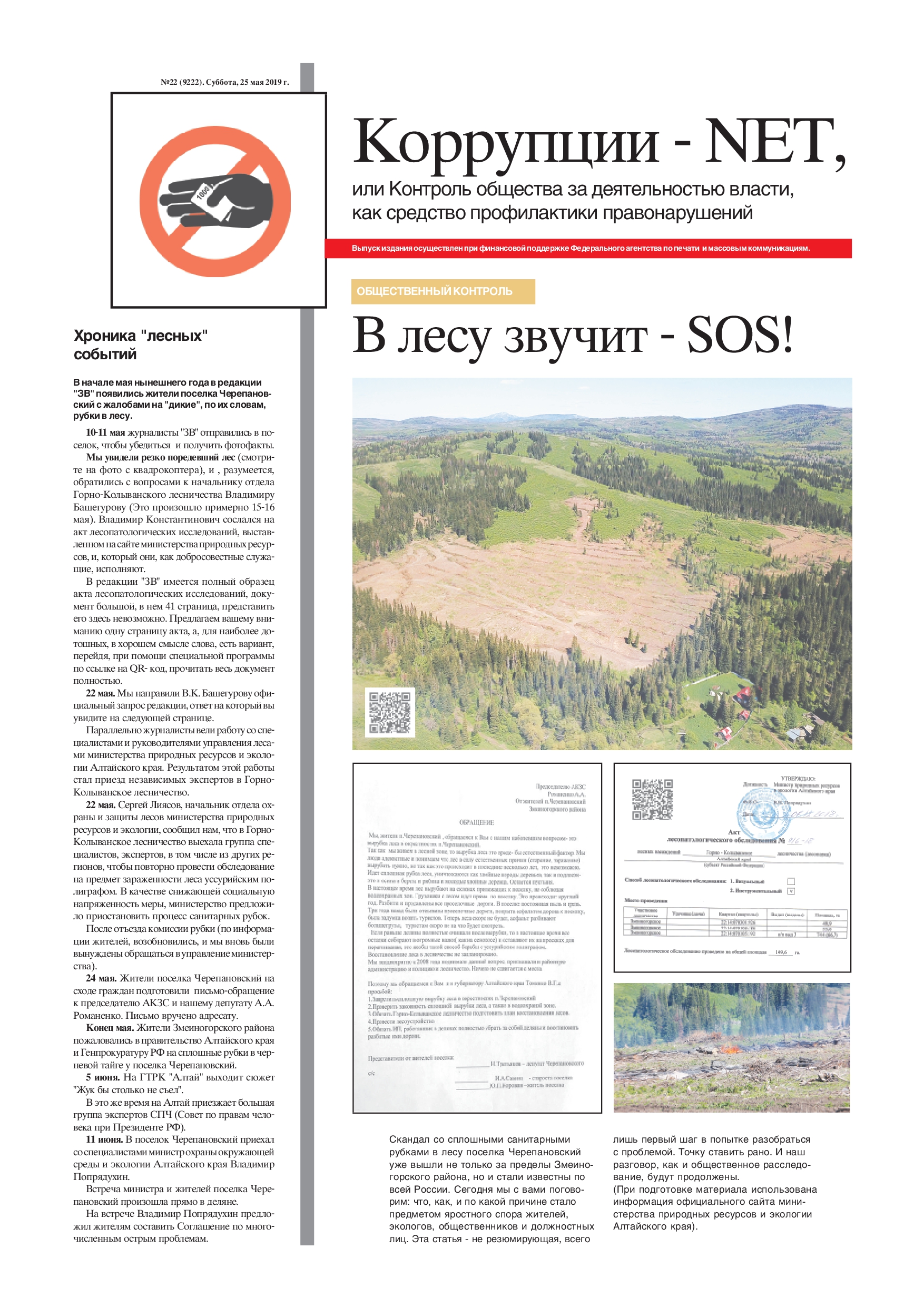 В субботнем номере "ЗВ" выйдет специальный выпуск, в рамках социально значимого проекта "Коррупции - NET!".Все четыре страницы спец.выпуска посвящены проблемам, возникшим в нашем лесу. Мы прикрепили к печатным материалам акты лесопатологических исследований, видеосюжеты, которые можно посмотреть на своем электронном носителе (телефоне или планшете, при помощи определенной программы).