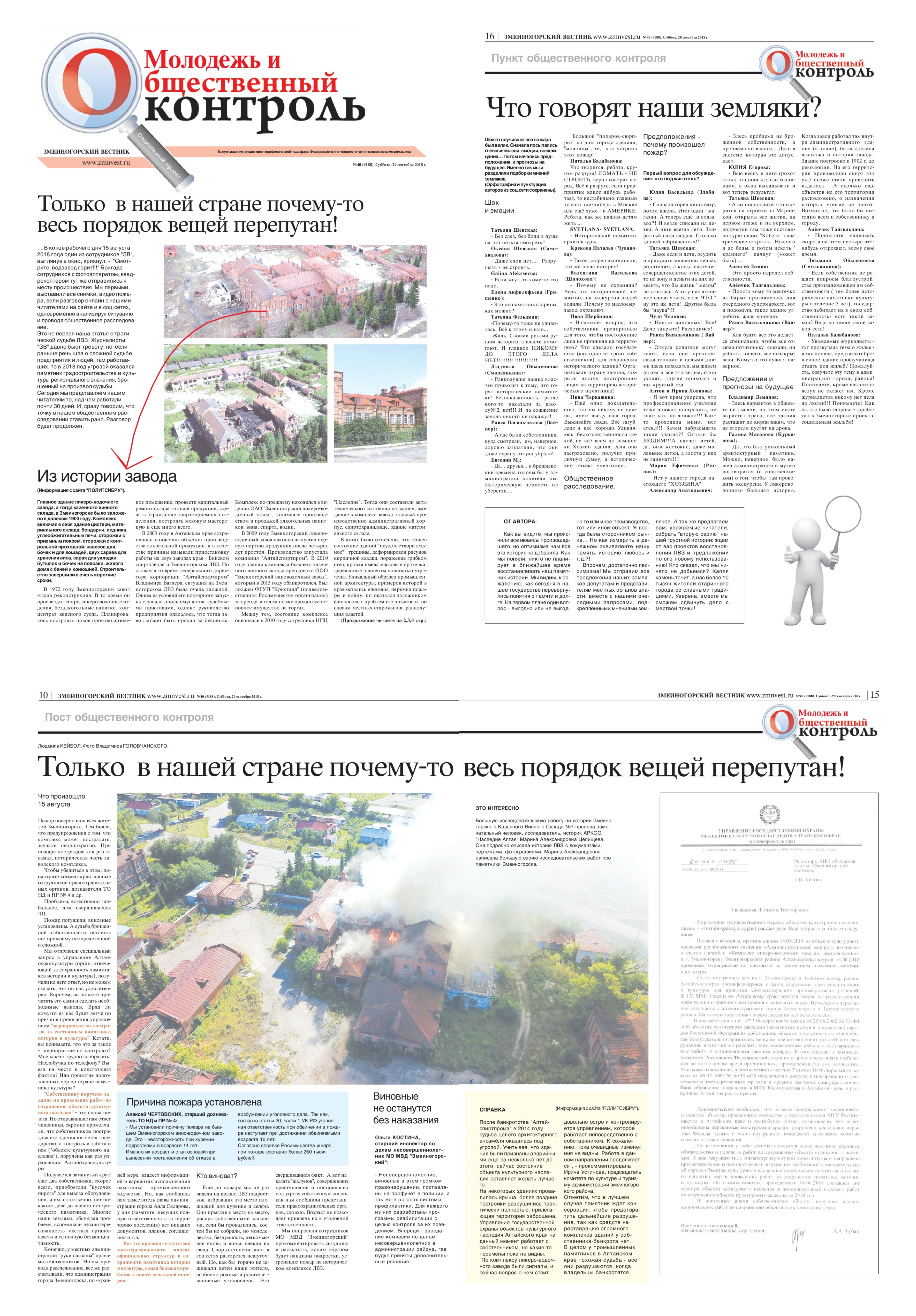В нашей субботней газете (за 29 сентября) выходит очередной специальный выпуск "Молодежь и общественный контроль".Весь спец.выпуск "ЗВ" посвящен пожару на ЛВЗ. Это промежуточные результаты нашего общественного расследования. Покупайте газету, читайте наше расследование, комментируйте его на сайте и в соц.сетях.
