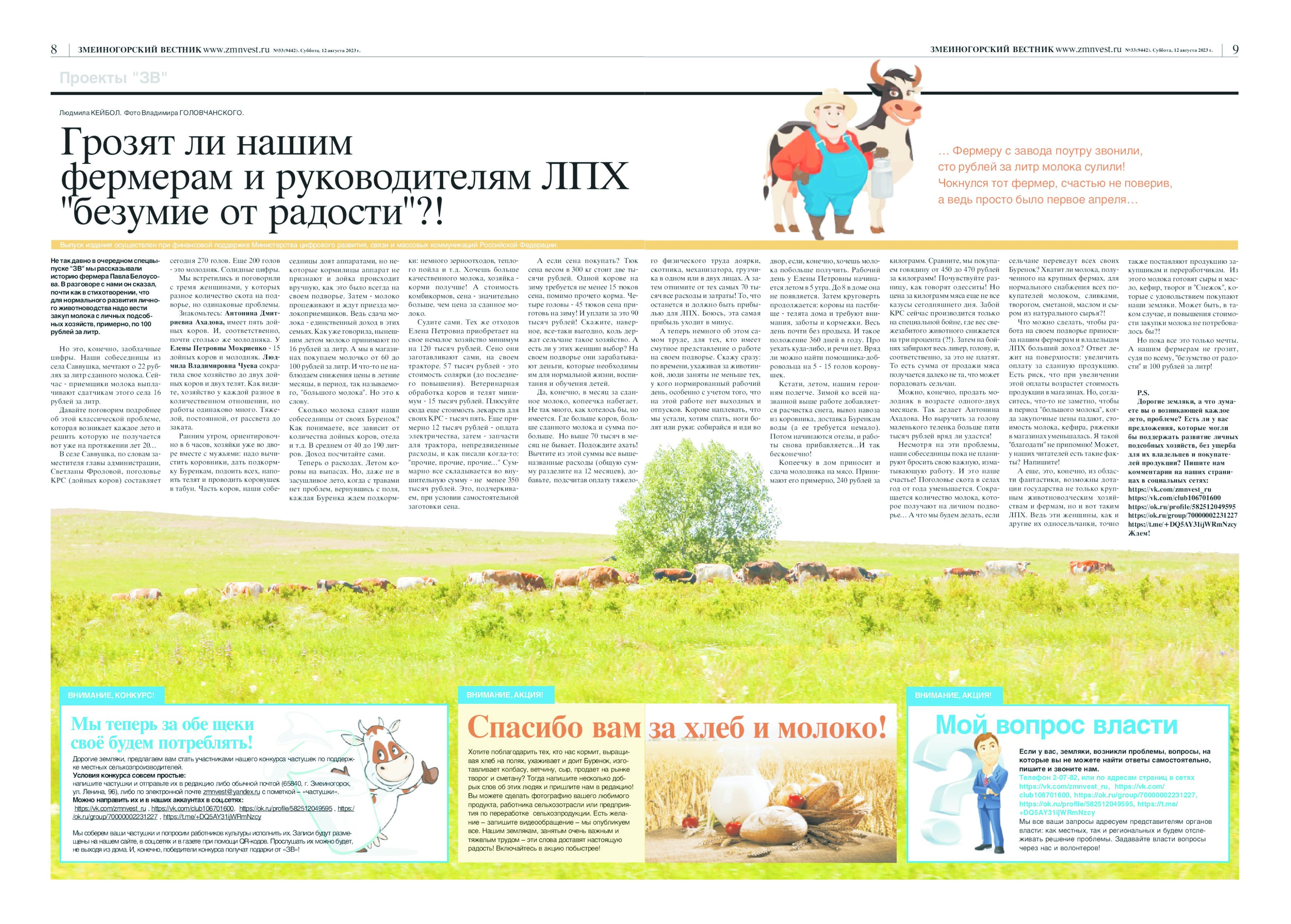 Газета у же в редакции!Интересные новости, аналитический материал о закупочных ценах на молоко и мясо, об интересных и забытых местах Горной Колывани и т.д. Ждите газету по подписке или покупайте ее в торговых точках!