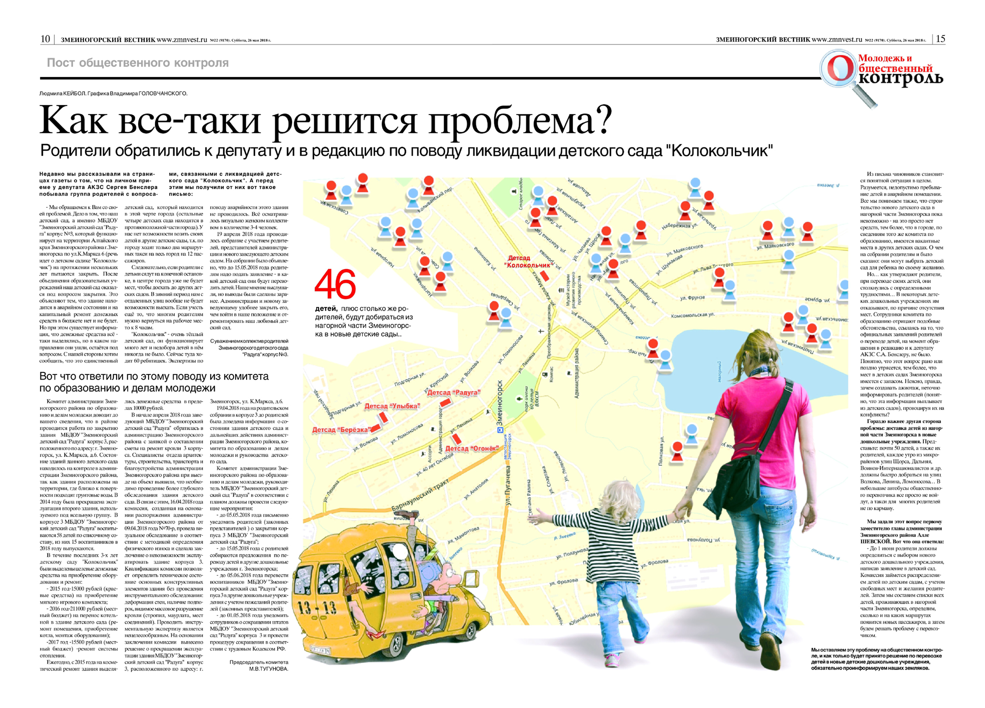В субботнем выпуске "ЗВ" будет специальное приложение "Молодежь и общественный контроль". Эту статью мы готовили вместе с молодыми родителями, проживающими в нагорной части Змеиногорска.А кроме этого - множество интересных новостей, аналитическая статья по работе администрации района в 2017 году, зарисовки, информация по особенностям ЕГЭ-2018 и многое другое. Читайте, комментируйте, пишите нам.
