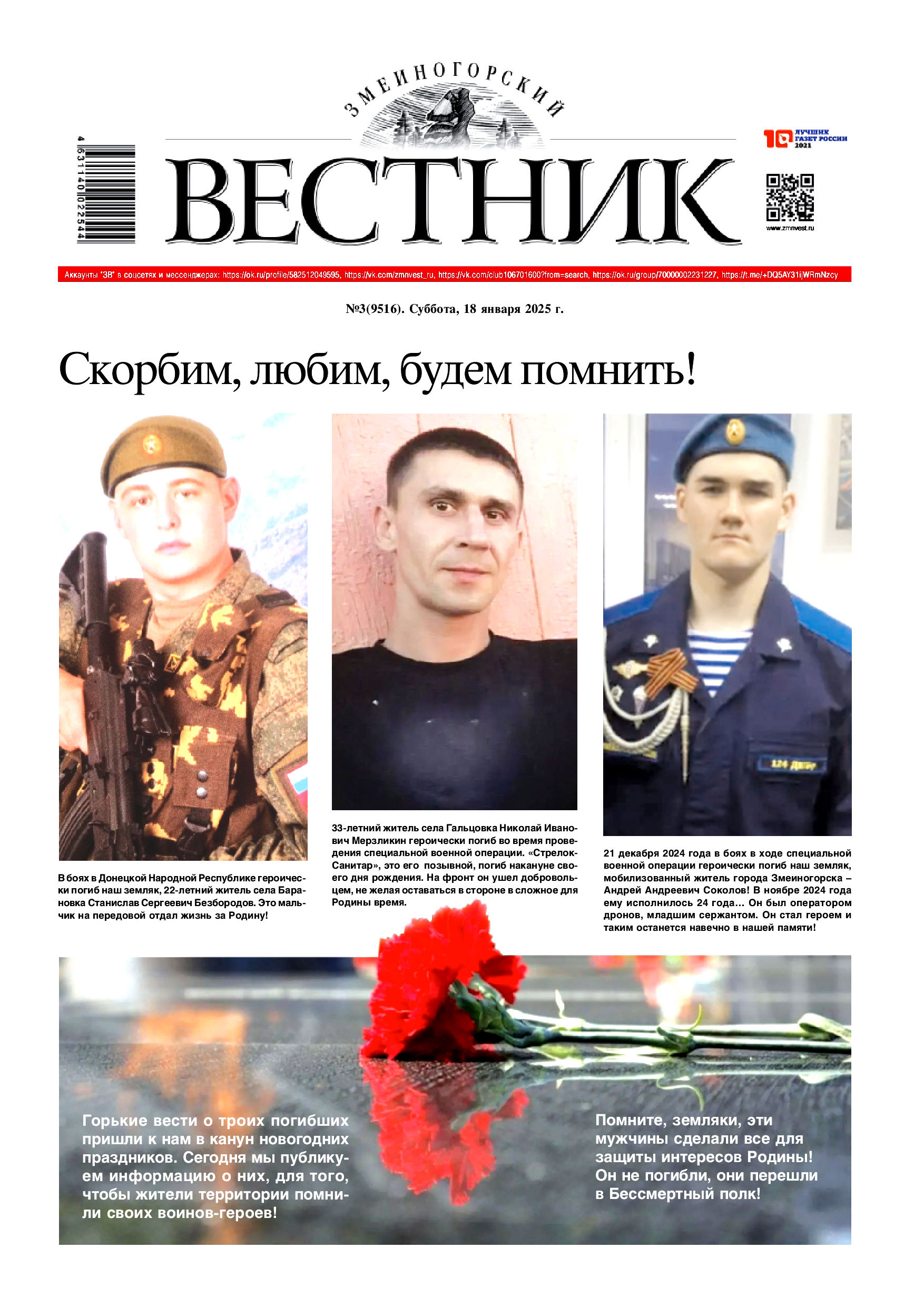Мы начинаем работу над новым проектом "ЗВ" - "Алтая верные сыны, Отечества Солдаты!"На первой полосе вы видите погибших героев СВО, наших земляков, отдавших свои жизни за Родину! Вечная им память!