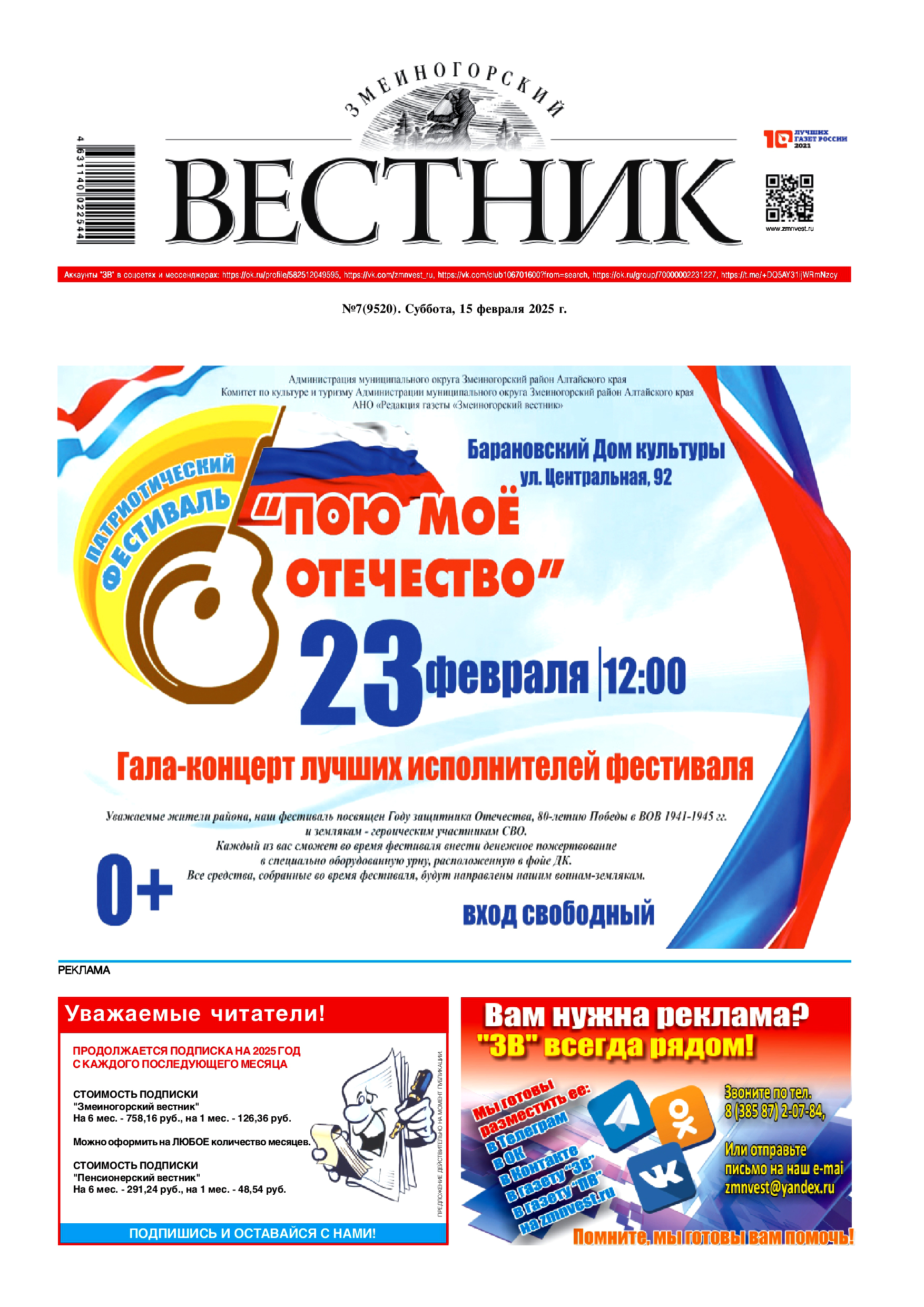Читайте в субботу, 15 февраля, наш спецвыпуск "Алтая верные сыны, Отечества Солдаты!"