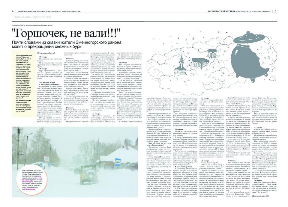 Этот аналитический материал опубликован в "ЗВ" на четырех страницах.Но, газета, добравшись до Поспелихи, остается пока там, по причине проблем с транспортом. Надеемся, что сегодня ее доставят в Змеиногорск.