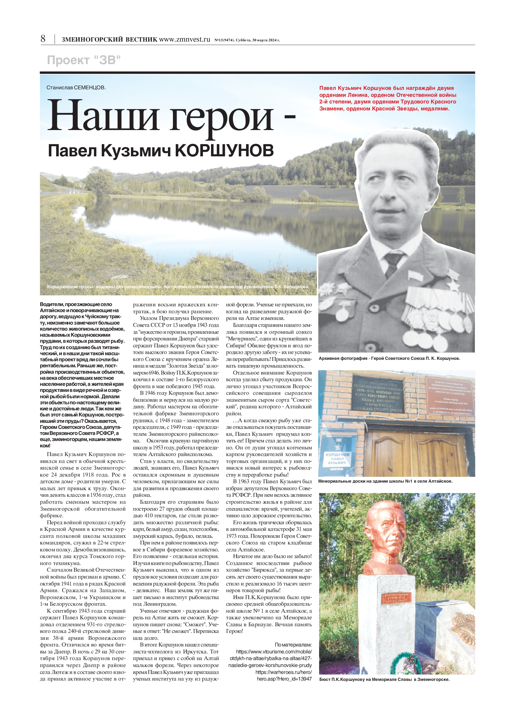 Нельзя забывать о героях иных времен... В нашем очередном спецвыпуске мы рассказываем вам о Герое Советского Союза, нашем земляке, Павле Коршунове. Он был педагогом, ушел на фронт, стал Героем, вернулся с войны и долго возглавлял Алтайский район Алтайского края.Его безмерно уважали земляки и на малой родине в Змеиногорске, и на новой - в Алтайском районе!