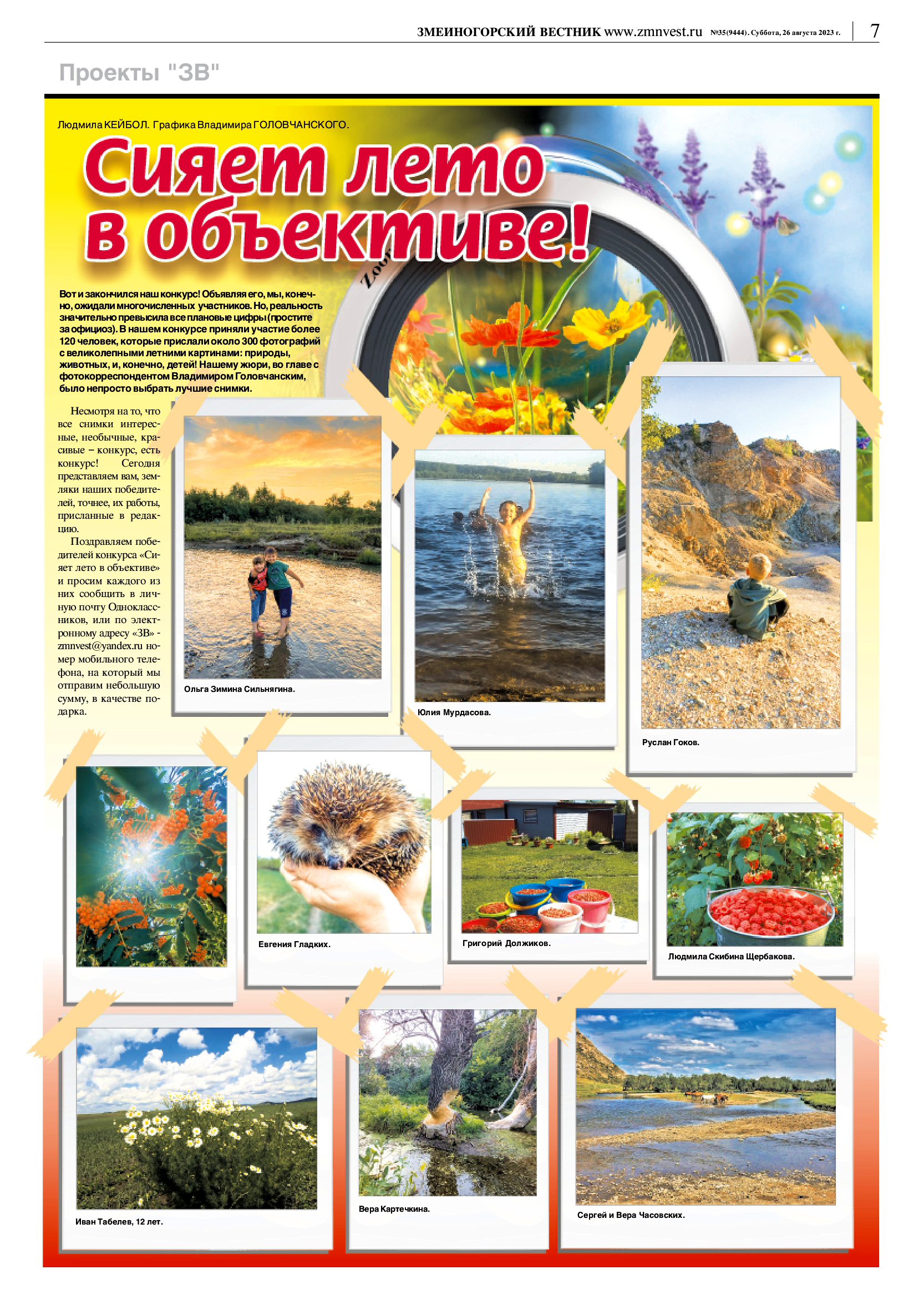 Поздравляем победителей конкурса «Сияет лето в объективе» и просим каждого из них сообщить в личную почту Одноклассников, или по электронному адресу «ЗВ» - zmnvest@yandex.ru номер мобильного телефона, на который мы отправим небольшую сумму, в качестве подарка.