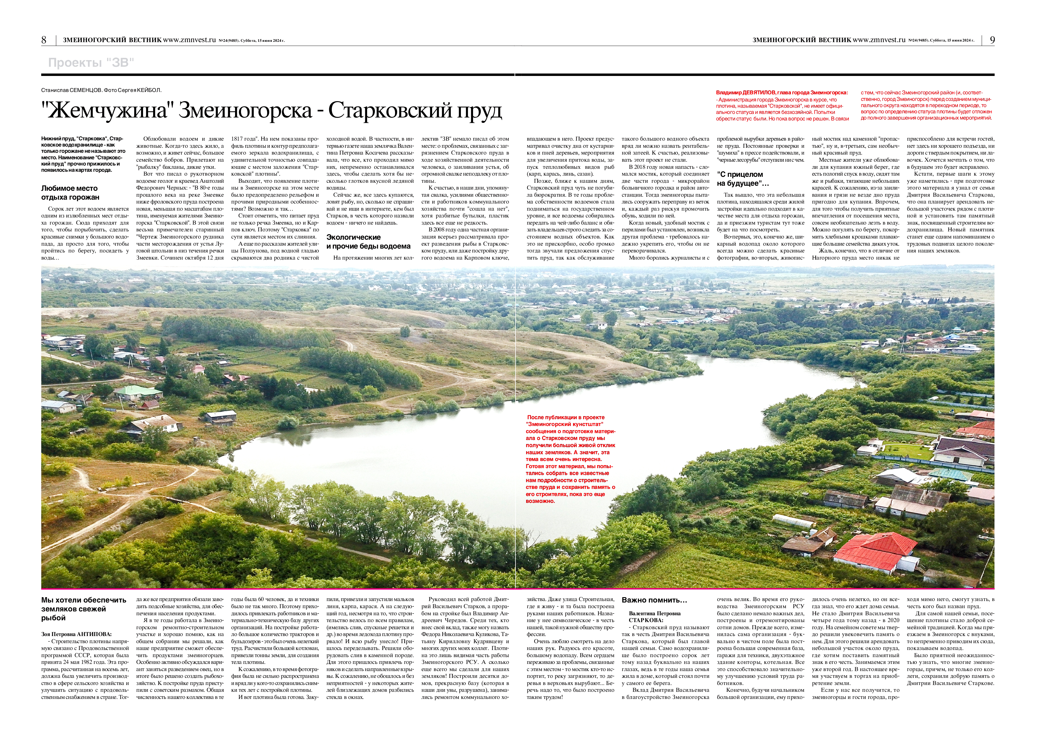 Ждем, как всегда ваших откликов, комментариев, предложений!Вы видите на фото большой материал нашего корреспондента Станислава Семенцова о плотине в Змеиногорске, которую называют «Старковской». История ее появления, проблемы сегодняшнего дня – все читайте в «ЗВ». Предлагайте, что необходимо сделать для сохранения этого уникального природного уголка.